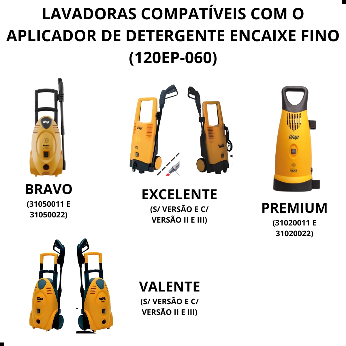 Compatível com as lavadoras WAP das linhas Bravo, Valente, Excellent e Premium, este acessório é a escolha certa para quem busca eficiência, durabilidade e total compatibilidade com o equipamento.